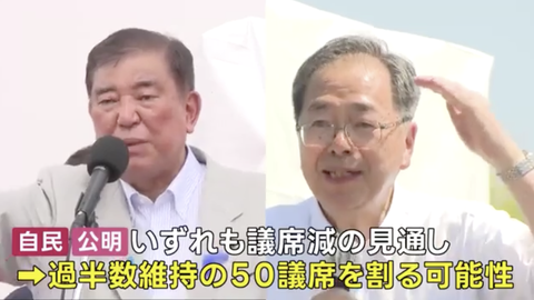 【参院選情勢】自公、過半数維持の50議席を割る可能性。1週間前より与党に厳しい情勢に