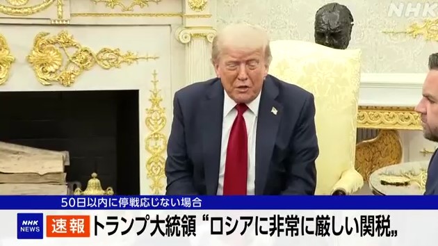 アメリカのトランプ大統領、ロシアが50日以内に停戦合意しなければ2次関税「ロシア貿易国に100%の関税」
