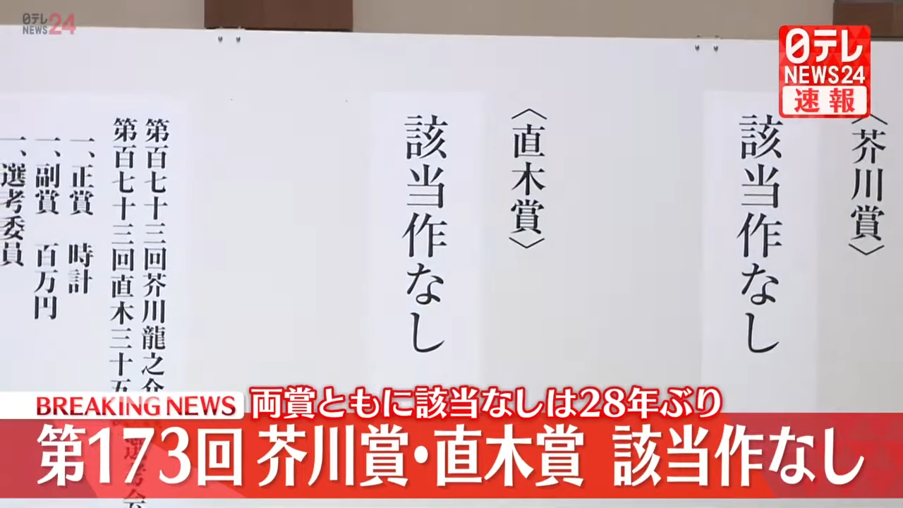 第173回芥川賞・直木賞ともに「該当作なし」 27年半ぶり6回目