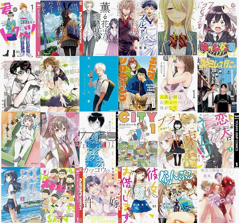 九龍ジェネリックロマンス、カッコウの許嫁、ふたりソロキャンプ、彼女、お借りします、よふかしのうた、ファミレス行こ。、ブスに花束を。、おそ松さんなど
