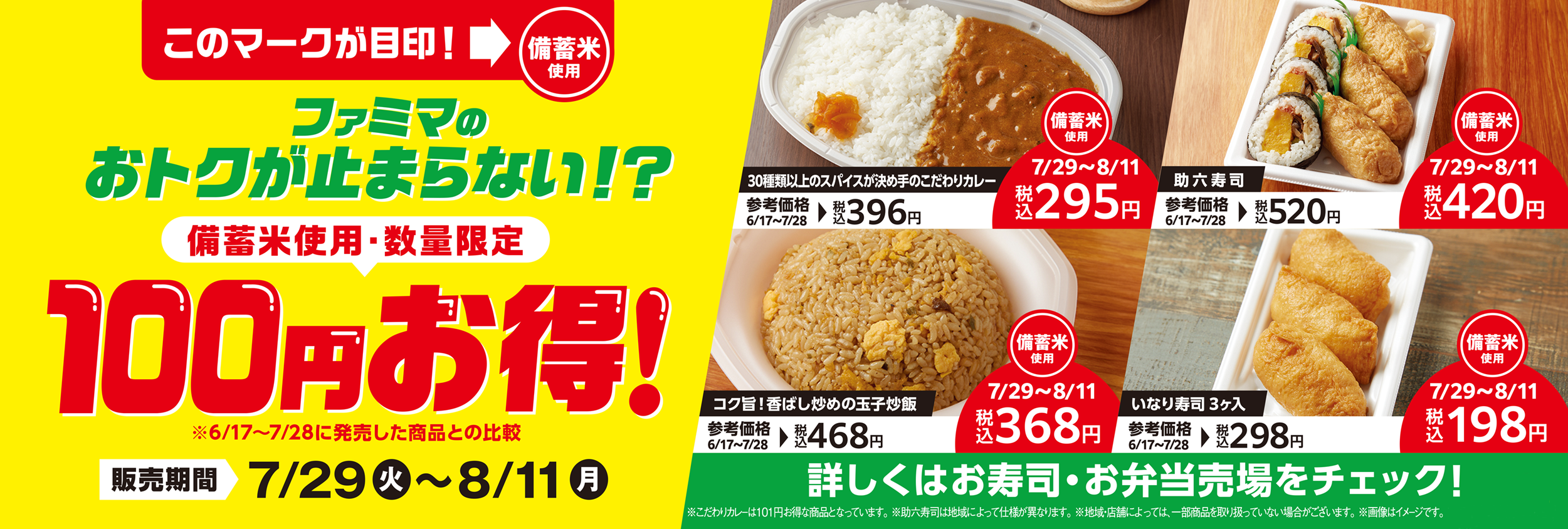 政府備蓄米使用のお弁当とお寿司が100円お得!