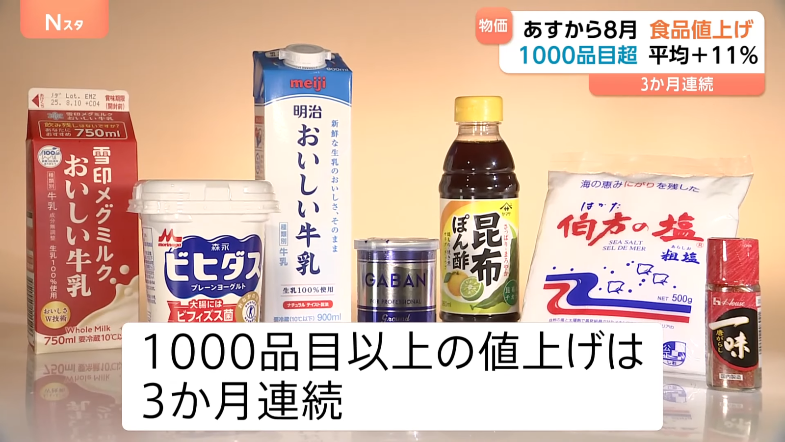 2025年8月の飲食料品値上げ、前年比1.5倍の1010品目に 調味料・乳製品中心
