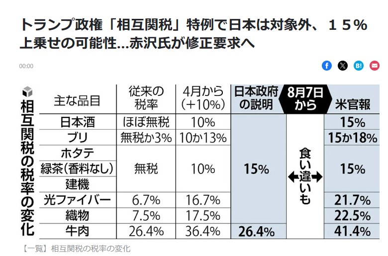 トランプ政権、相互関税の特例はEUのみで日本は対象外 日本は追加関税15% 日本が説明した合意内容とは異なる税率に