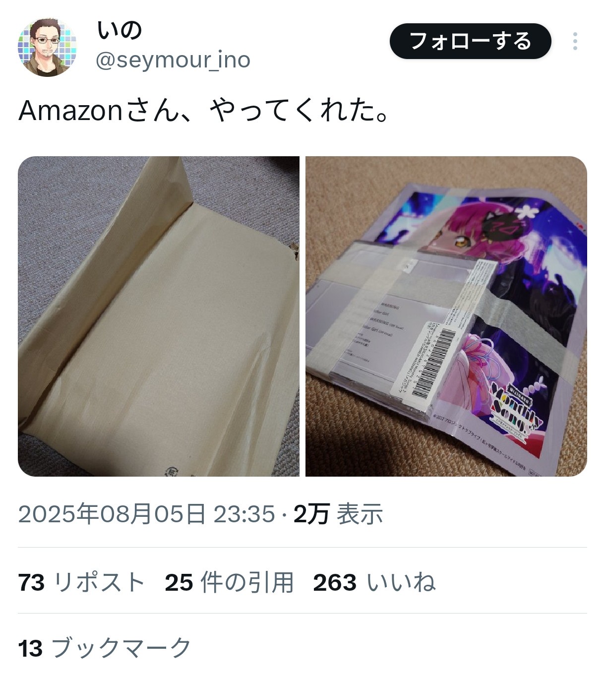 【画像】ラブライバー、Amazonの配送にキレる