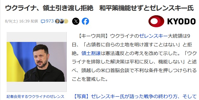 ウクライナ、領土引き渡し拒絶 和平策機能せずとゼレンスキー氏