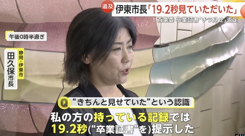 【朗報】田久保市長「卒業証書はチラ見せじゃないもん!19.2秒見せたもん」