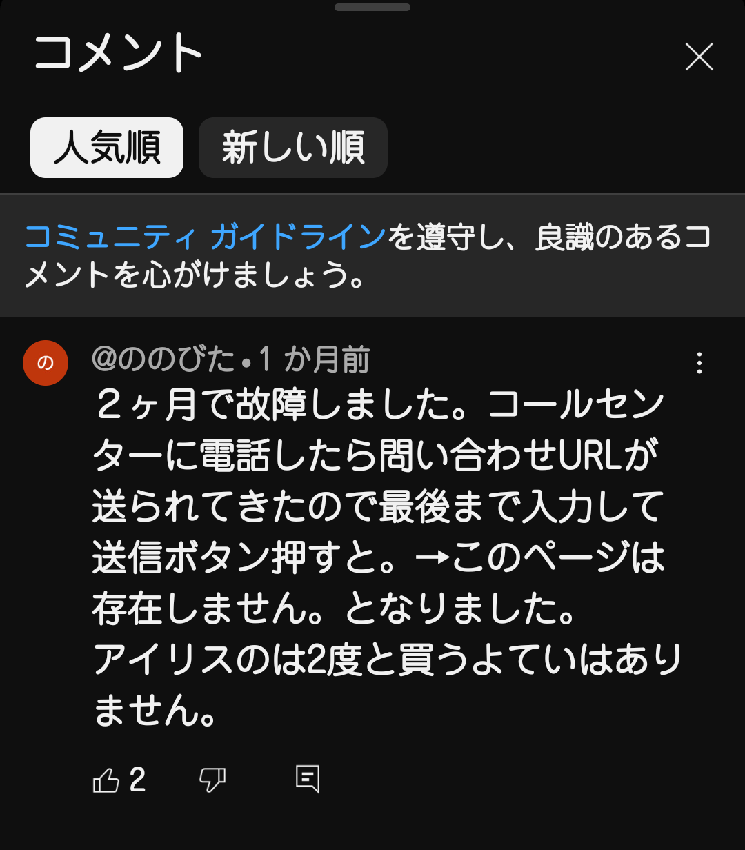 アイリスオーヤマはその半値くらいで手頃なのだがユーチューブのコメ見てたら怖くなったのたがどうすべきか