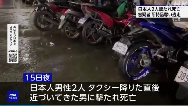 マニラで銃撃2邦人死亡 タクシー降りた直後、近づいた男が発砲 所持品奪いバイクで逃走