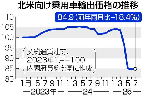 乗用車輸出価格がマイナス18.4%になった模様