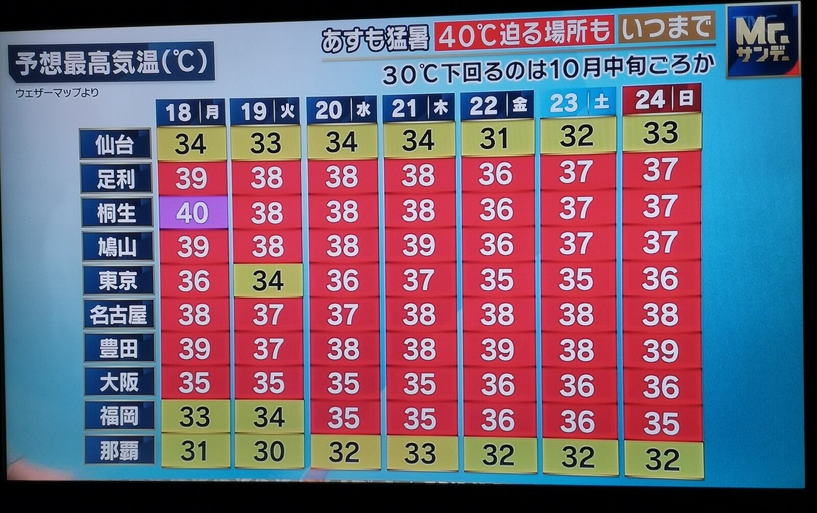 【悲報】気温が30度を下回るのは10月中旬になりそう