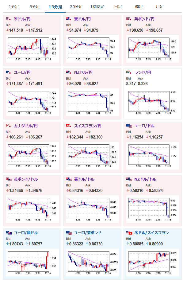・日経平均急落により円高傾向、ただしドル円は微妙