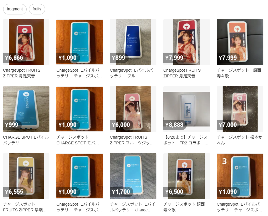 「貸したモバイルバッテリーを転売しないで」 ChargeSPOTが呼び掛け メルカリには「FRUITS ZIPPER」コラボモデルなどずらり