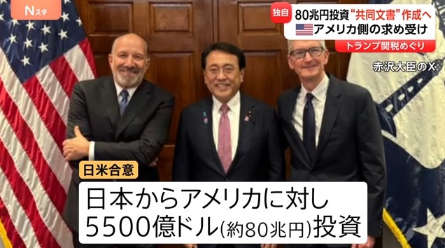 日米関税合意で日本政府が方針転換 80兆円対米投資について共同文書を作成へ アメリカ政府の要望受け