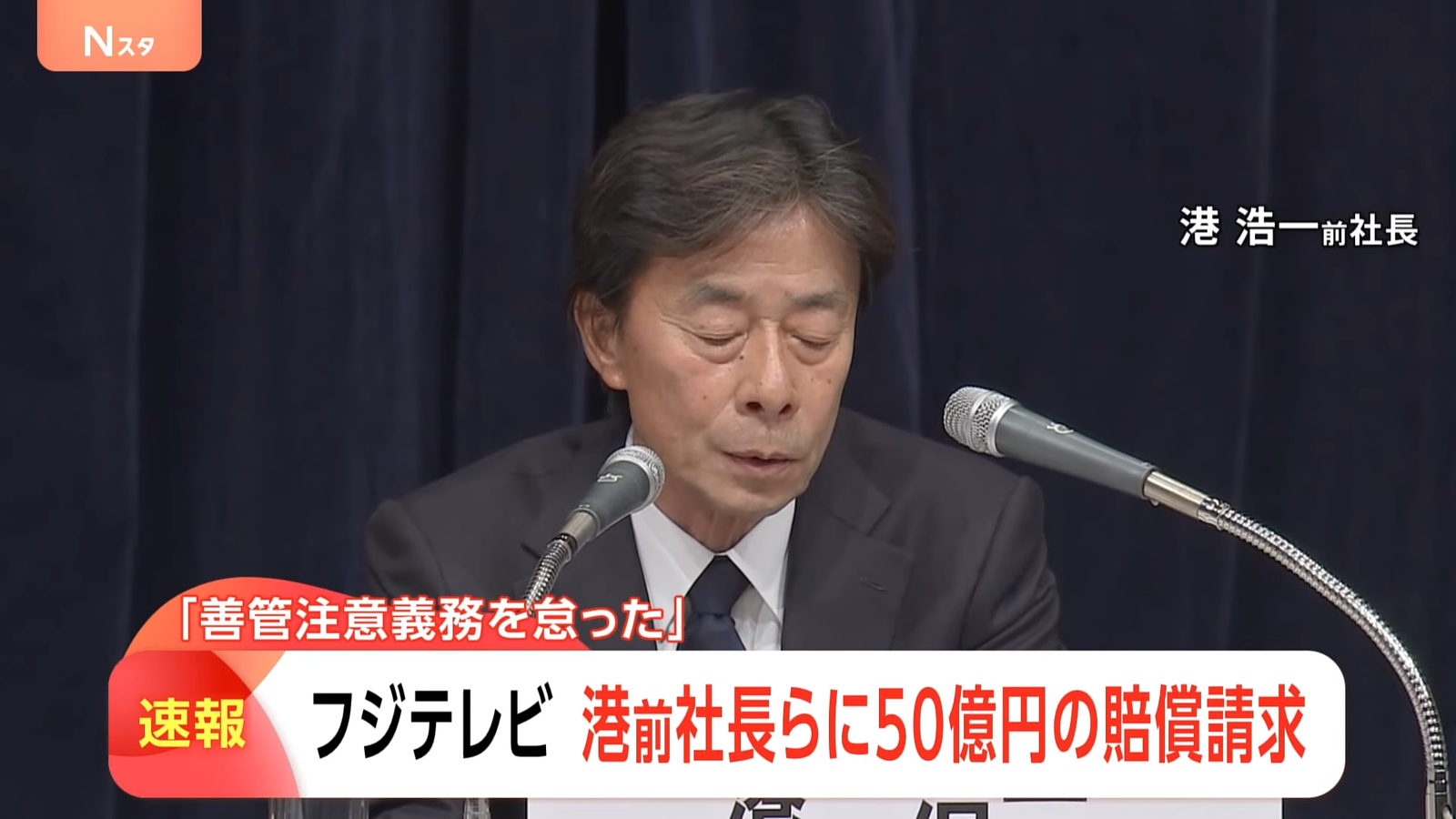 フジテレビ元社長に50億円の訴訟(´・ω・`)