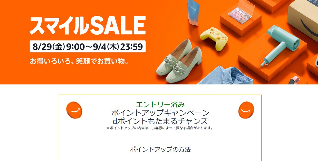 Amazon、8月29日9時から「スマイルSALE&ポイントアップキャンペーン」を開催