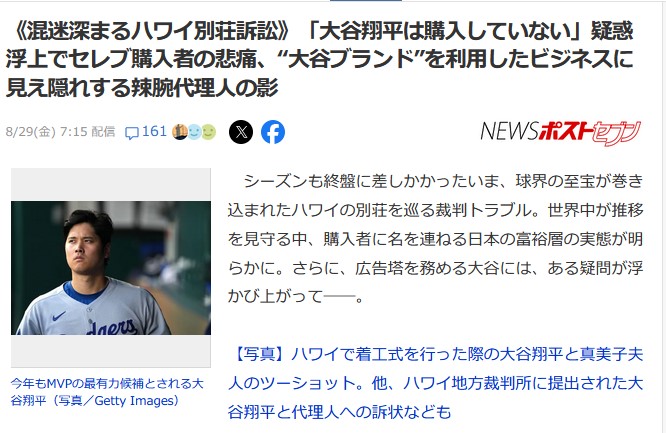 《混迷深まるハワイ別荘訴訟》「大谷翔平は購入していない」疑惑浮上でセレブ購入者の悲痛、“大谷ブランド”を利用したビジネスに見え隠れする辣腕代理人の影