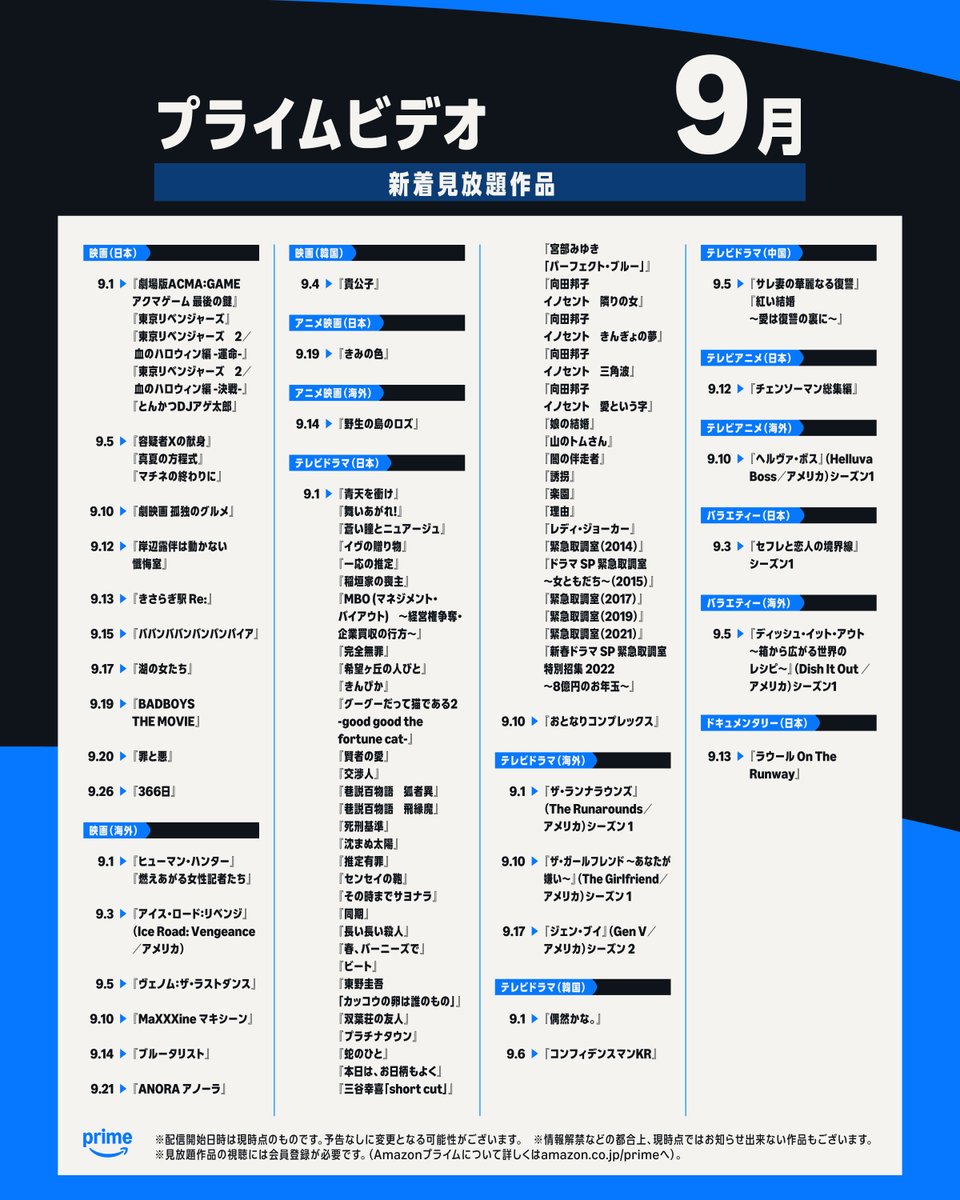 アマゾン「Prime Video」、9月の新着作品は「ババンババンバンバンパイア」「岸辺露伴は動かない 懺悔室」など