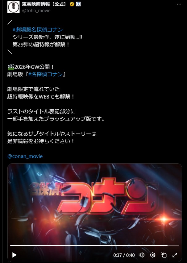 2026年GW公開、劇場版名探偵コナンの超特報映像がWEBでも解禁 萩原千速役は沢城みゆきさんに