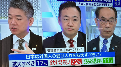 日曜報道「外国人受け入れ拡大」すべきでないが72%