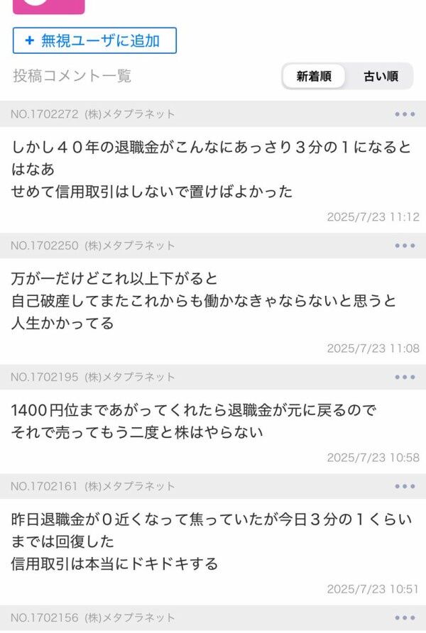 【悲報】40年の退職金をメタプラネット株にぶち込んでしまった投資家、咽び泣く