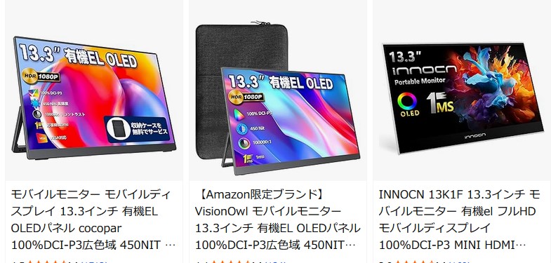 13.3インチの有機ELモバイルモニター1万5000円くらいで買えるけど写真を綺麗に見ようと思ったら有機ELなのかな?