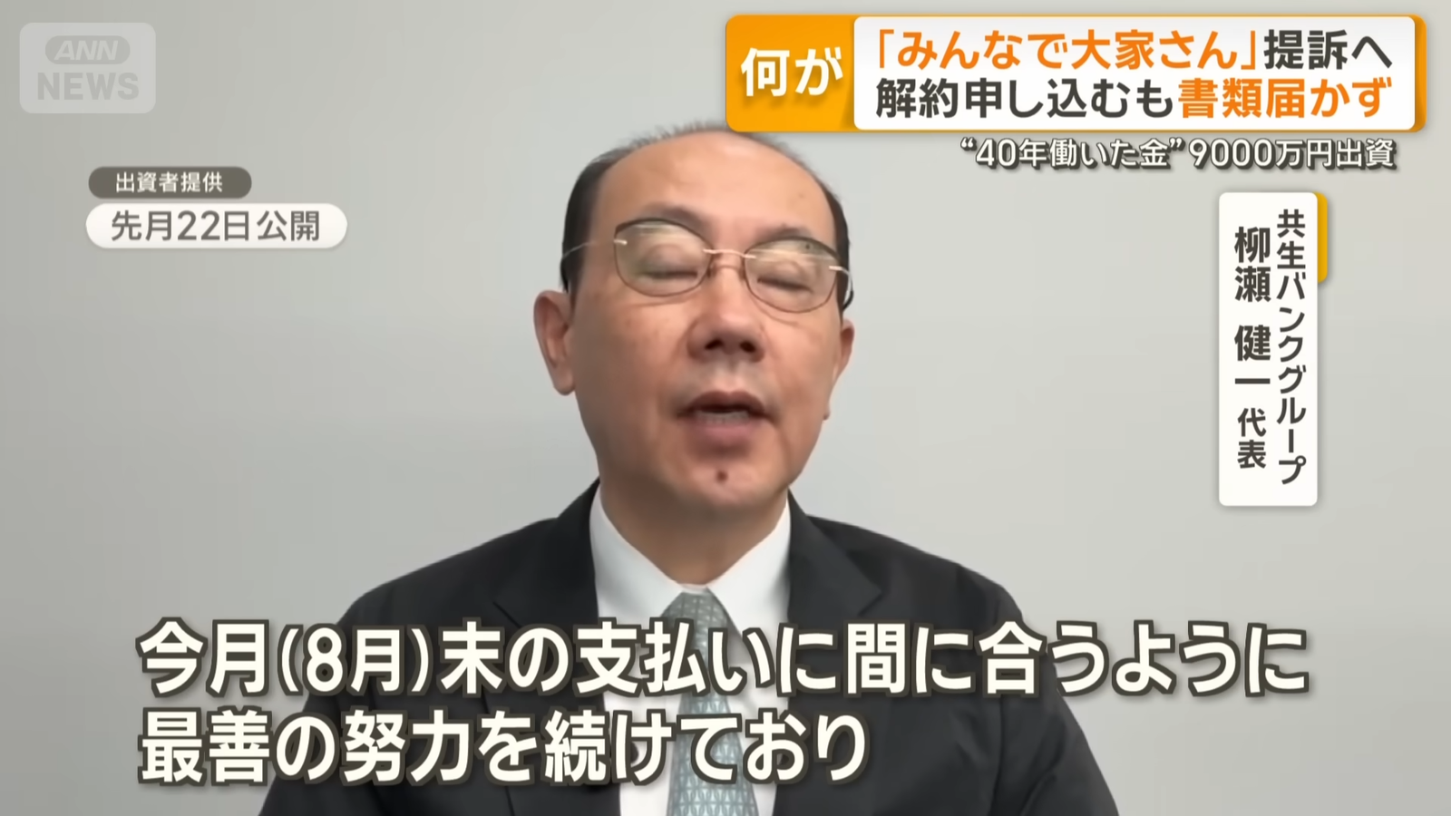 分配金の支払い遅れ「みんなで大家さん」、出資者が返金求め運営会社の「共生バンク」を提訴へ 40年働いた金9000万円出資した人も