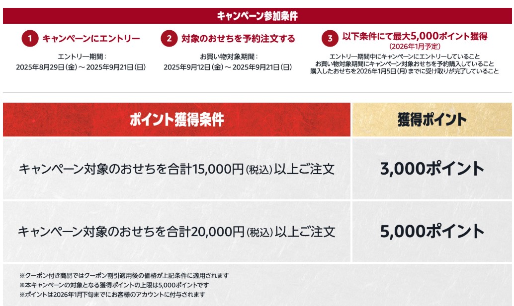 対象のおせち合計20,000円以上注文:5000ポイント