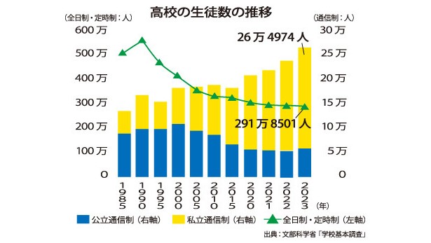 通信制高校に通う生徒が過去最多の30万人超え 約10人に1人 不登校の広がり背景に急増