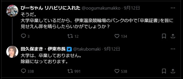 火に油でX大荒れ 19・2秒「卒業証書」見せたはずの東洋大学歴疑惑の市長「証書見せろ」に→「大学は卒業しておりません」堂々巡りの挑発的投稿 「えっ?」「19・2秒は何を?」「口を慎むよう」