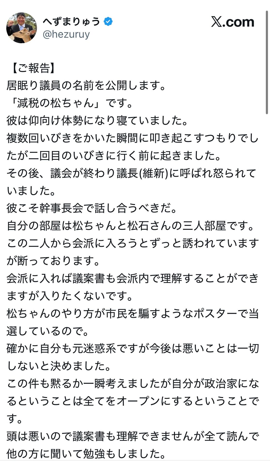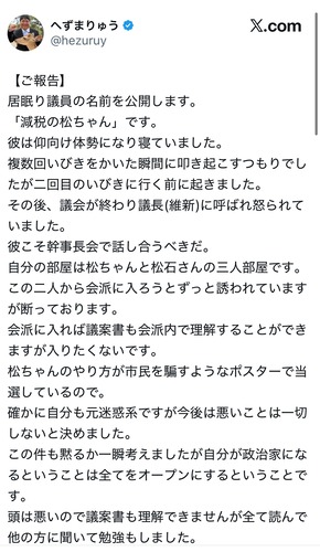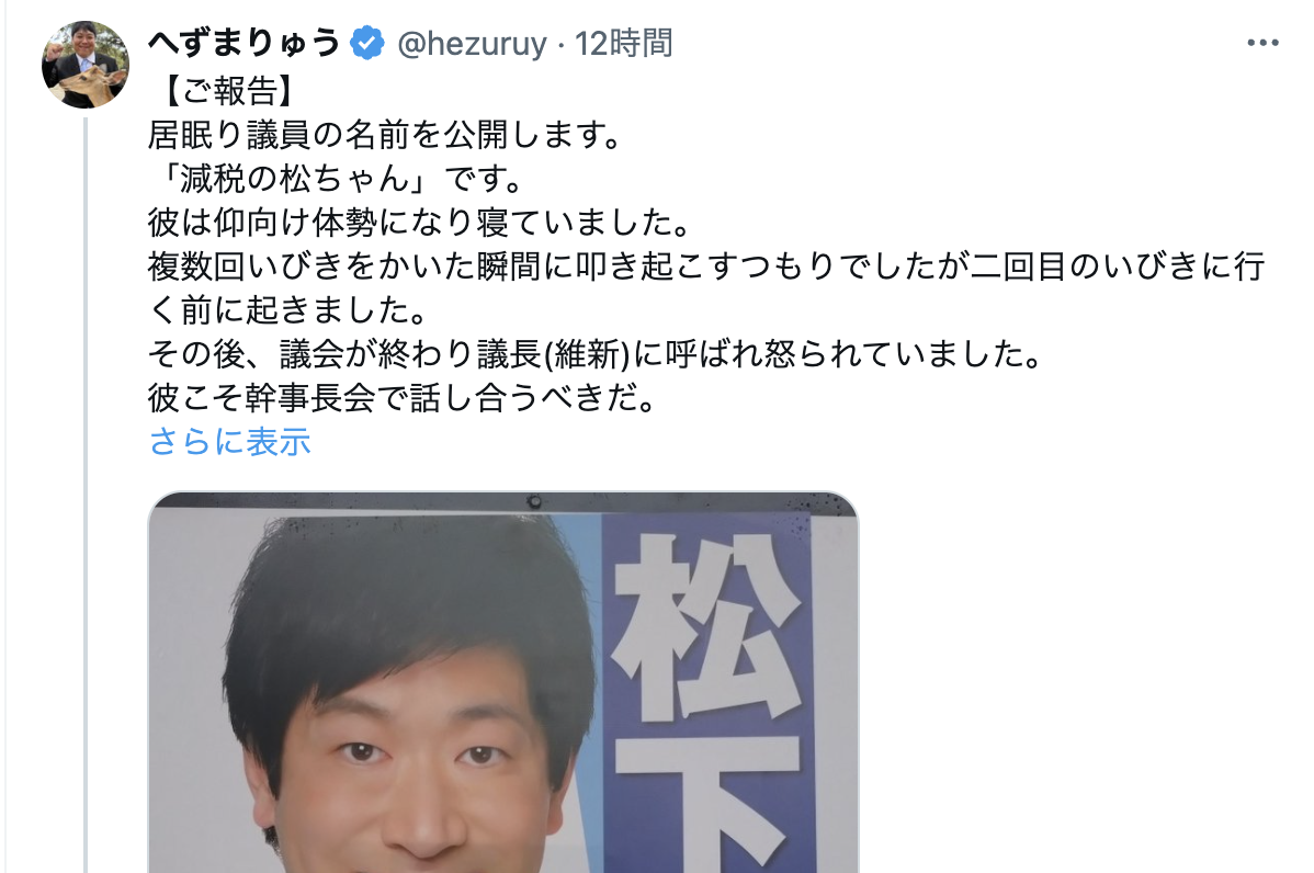 【朗報】へずまりゅう、居眠り議員第一弾を晒す