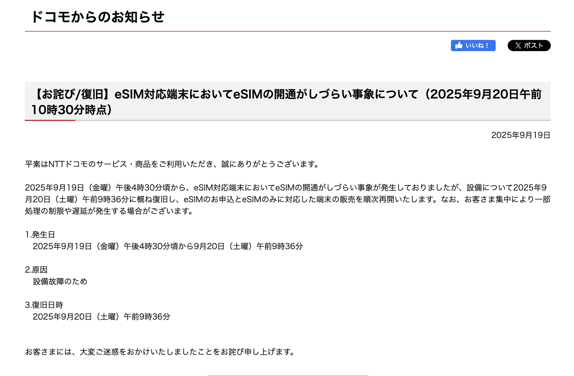 【朗報】ドコモ、eSIM不具合のiPhone17販売再開