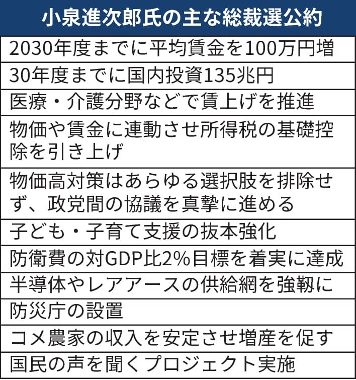 自民党総裁選に出馬する小泉進次郎氏、公約を発表 2030年度までに平均賃金100万円増 所得税の基礎控除拡大など