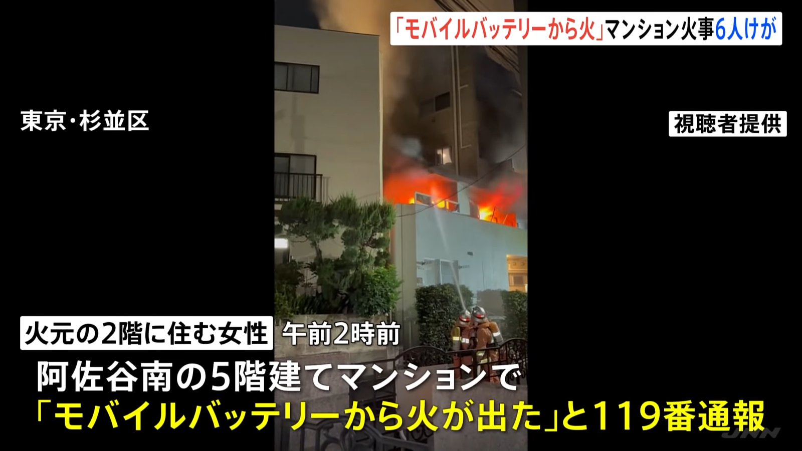 「スマホを充電していたらモバイルバッテリーから火が」と通報、マンション火災で6人搬送