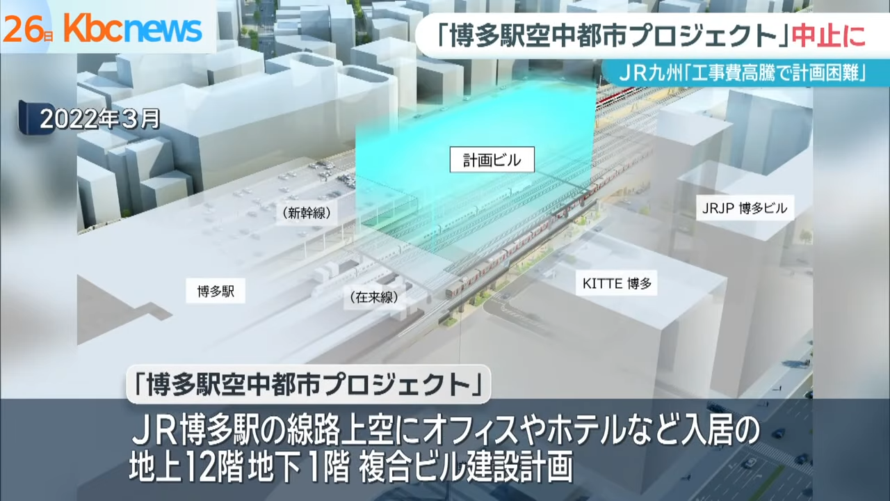 JR九州、「博多駅空中都市プロジェクト」を中止 建設費が当初の想定の2倍で採算取れず