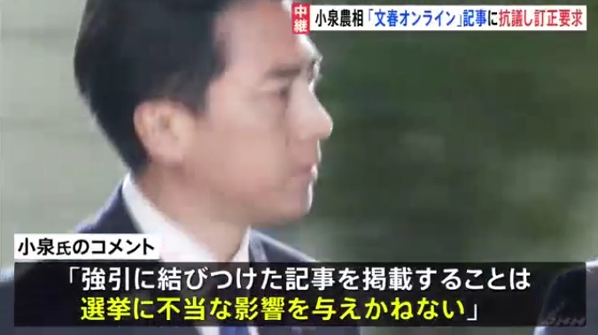 【速報】小泉農水大臣 文春オンライン配信の“党員数をめぐる記事”に抗議、訂正求める「不適切な報道」