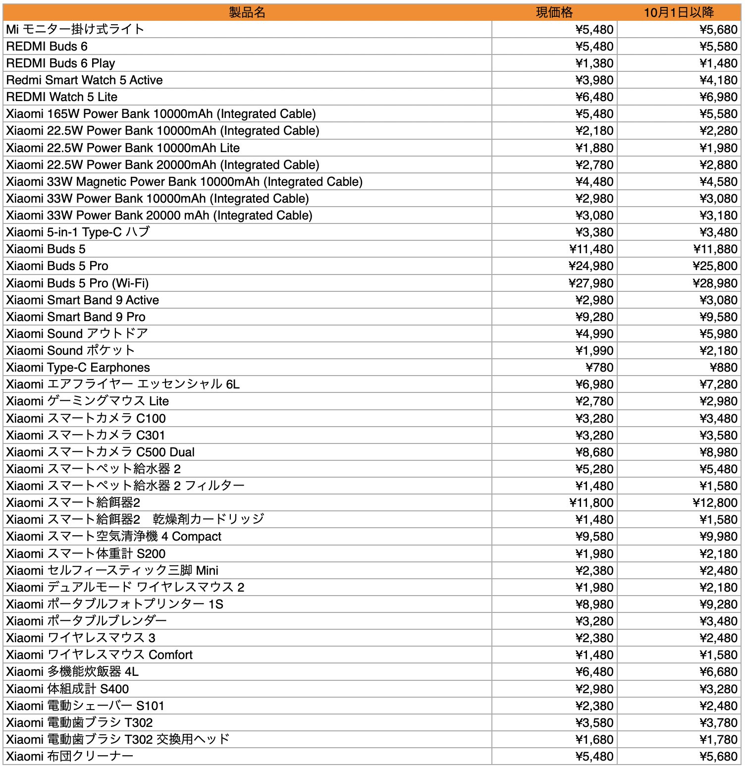 【悲報】Xiaomi、一部製品を100円~1000円値上げ