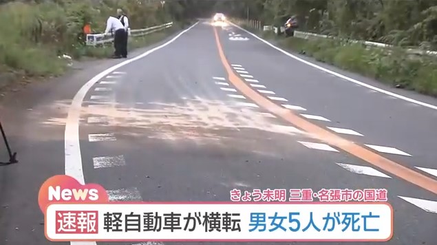 交通事故で男女5人が死亡 三重県名張市で軽自動車が横転 定員超過の可能性も