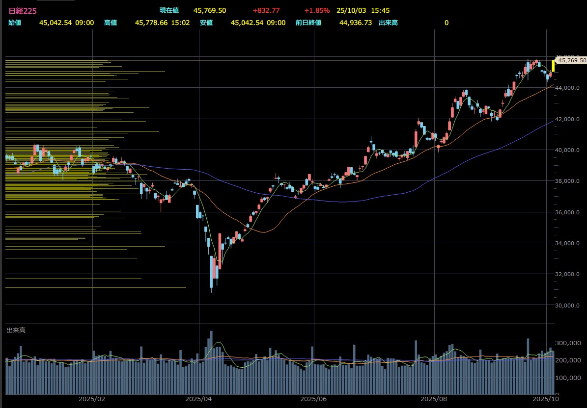 日経平均株価、終値4万5769円で最高値更新 OpenAI祭りでソフトバンクG・アドバンテスト・日立などに買い