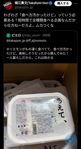ファン「ホリエモンが食べてて美味しそうだから買ってみた!食べ方汚かったけど」→乙女激怒