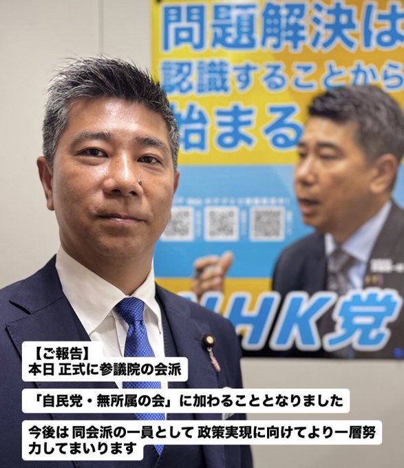 自民党、「NHKから国民を守る党」と組む N国の斉藤健一郎参院議員が参院自民会派入り