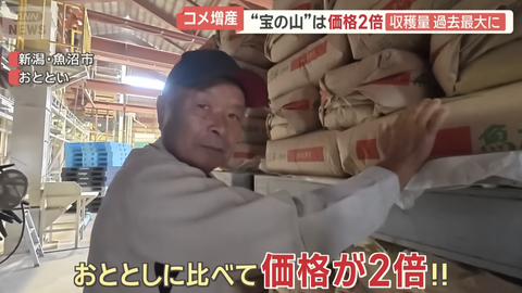 【悲報】米が過去最高の収穫量で余る事態に、ただし値段は2倍…