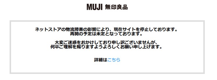 無印良品https://faq.muji.com/%E3%82%B5%E3%82%A4%E3%83%88%E3%83%A1%E3%83%B3%E3%83%86%E3%83%8A%E3%83%B3%E3%82%B9%E3%81%8A%E3%82%88%E3%81%B3%E3%82%B5%E3%83%BC%E3%83%93%E3%82%B9%E5%BD%B1%E9%9F%BF%E3%81%AE%E3%81%8A%E7%9F%A5%E3%82%89%E3%81%9B-656d4e431c58e70026d3c44a