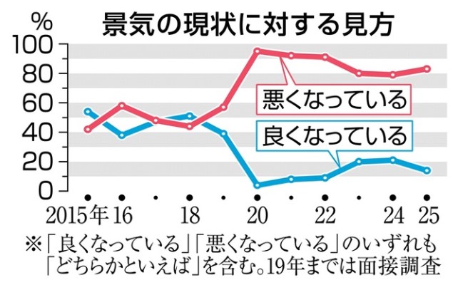 「景気悪化」83%、物価高重く 全国世論調査 政府対応への不満突出