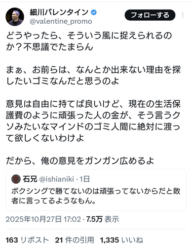 【朗報】細川バレンタイン、生活保護は怠け者ではなく、頑張ってる人に配るべきとバッサリ