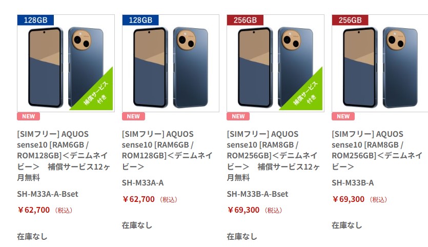 シャープの新型スマホ「AQUOS sense10」のSIMフリー版の価格判明 6GB+128GBが6万2700円 8GB+256GBが6万9300円