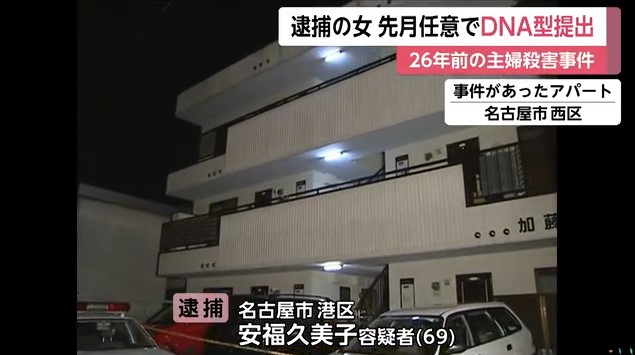 DNA型提出拒むも一転…10月に任意の提出に応じていた安福久美子容疑者(69)今年に入り複数回任意で話聞く 26年前の名古屋主婦殺害事件