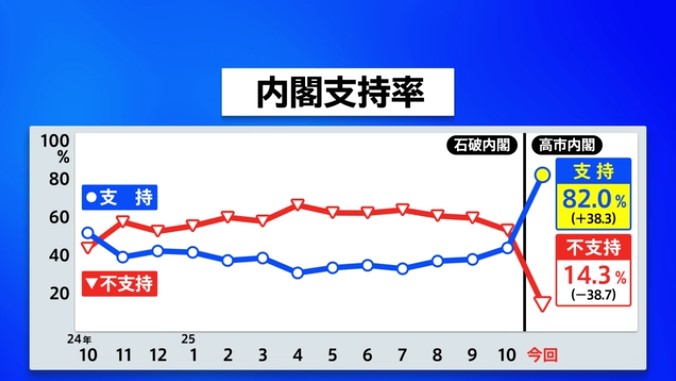 高市内閣の支持率82% 不支持14.3% ー JNN世論調査