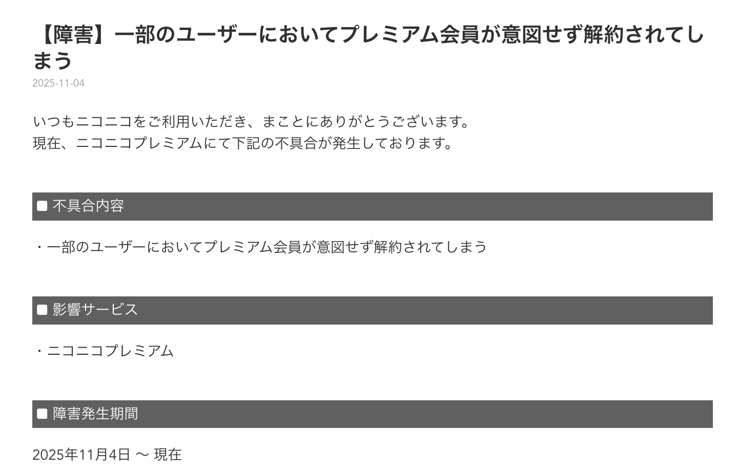 ニコニコ、「プレミアム会員」が強制解約される不具合 「ニコニコチャンネル」を強制退会になる場合も