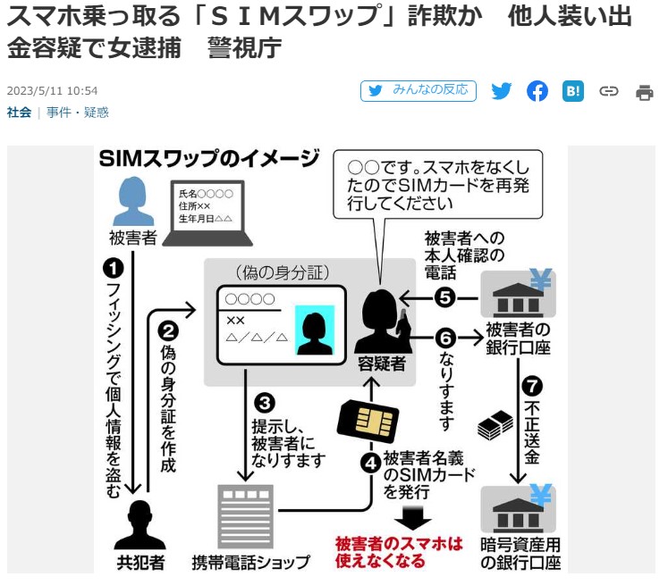 SIMスワップ詐欺の闇バイトの女逮捕されてるけど この詐欺ヤバすぎんか