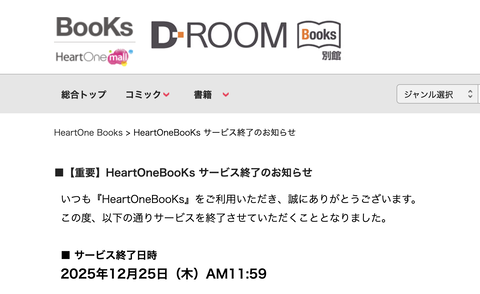 ■【重要】HeartOneBooKs サービス終了のお知らせ